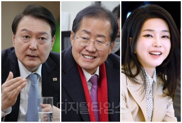 윤석열, 홍준표, 김건희. [디지털타임스 DB, 대통령실 제공]