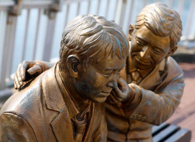 서울 마포대교에 설치된 자살 예방 동상. [사진 = 연합뉴스]