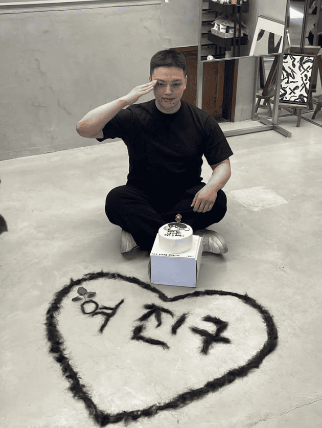 심지어 옆에는 군 입대를 축하하는 케이크까지!