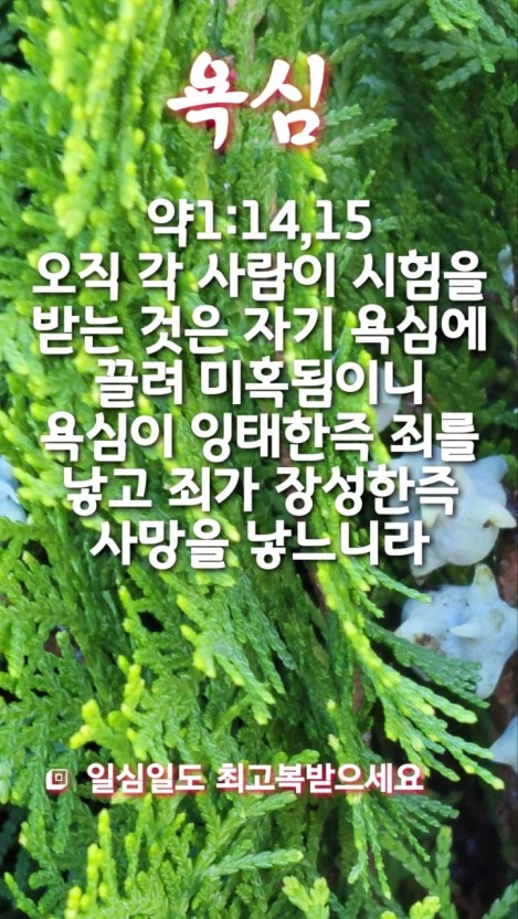 1. 욕심이 잉태한즉 죄를 낳고 죄가 장성한즉 사망을 낳느니라